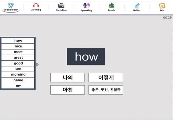 6단계로 진행되는 단어심화학습은 단어의 뜻과 함께 용법을 동시에 학습할 수 있도록 하여 학습한 단어를 활용한 표현력 향상에 중점을 두었습니다